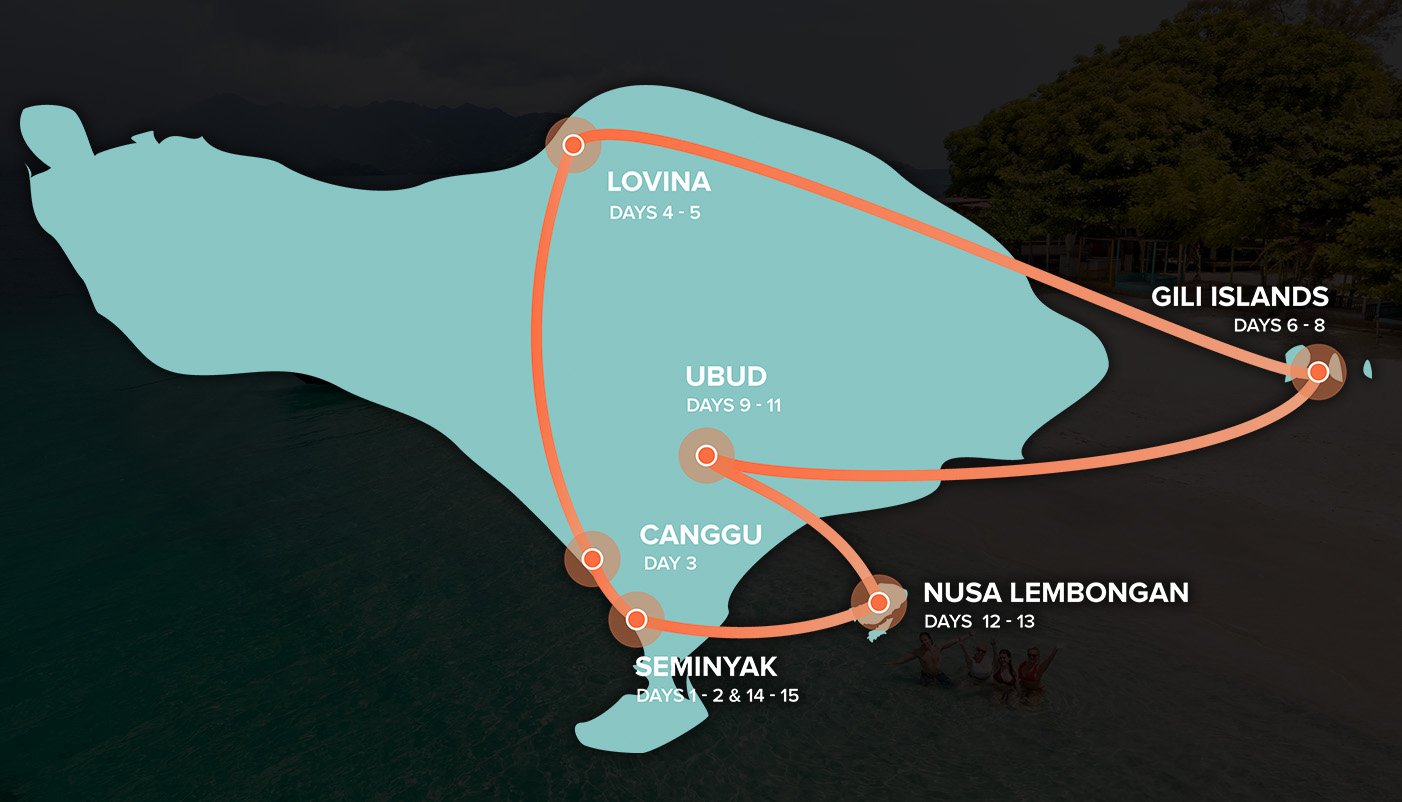Waving goodbye to Nusa Lembongan, we’ll make our way back to where it all began, Seminyak, for a farewell dinner and final group night out. Those flying home will make their way to the airport on the final day, or keep living the dream and extend your stay in Bali with our help and the new friends you’ve made.