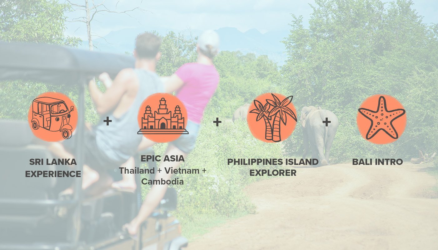 Check it out hereYou name it, you'll do it. Experience an array of unique bucket list adventures. See Epic Asia, Philippines Island Explorer 13 Day, Bali Intro 12 day & Sri Lanka Experience for full list of inclusions.